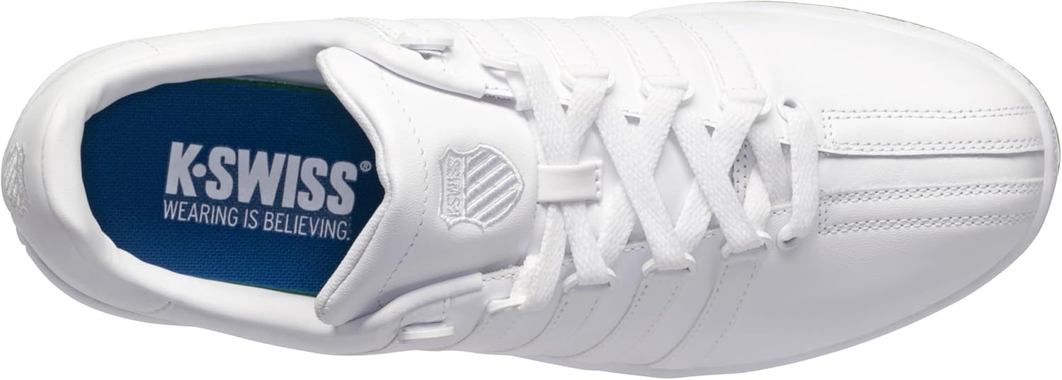 Customers find these sneakers comfortable and well-fitting, particularly suitable for wide feet, and appreciate their classic style and build quality that withstands football games. They are lightweight and offer good value for money, with one customer noting good arch support. The leather quality receives mixed feedback, with some praising it while others report fake leather. Customers mention the shoes make a popping sound with every step.